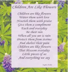 CHILDREN ARE LIKE FLOWERS Water them with love Nourish them with praise Compliment them Each and every day Be their. Children in a family are like flowers in a bouquet. Frete GRÁTIS em milhares de produtos com o Amazon Prime.