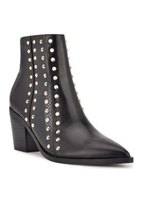 Nine West Womens What Studded Block Heel Booties Womens Shoes. Get a Sale Alert. 10 coupon applied at checkout Save 10 with coupon. ASOS DESIGN Ruby studded block heel boots in black 42 60. Valentino Garavani Womens Uniqueform Studded Platform Booties 1190. ASOS DESIGN Ruby studded block heel boots in burgundy 27 60. The What western inspired block heel boot gets an edgy upgrade with multiple rows of metallic studs and embossed snake texture paneling.