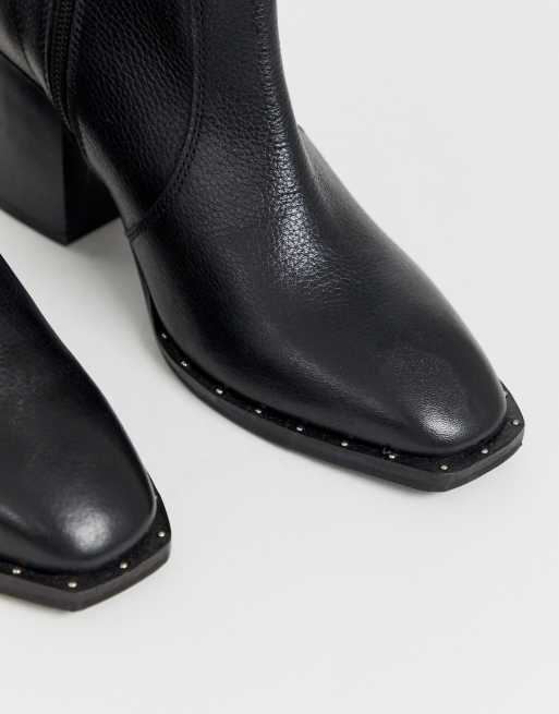 Shiny silver studs accent the outsole while a chic 75 silver zipper adds detail to front. Get a Sale Alert. They feature a pointed toe mid-height block heel and interior side zipper. 10 coupon applied at checkout Save 10 with coupon. Buy on Nine West. Also set Sale Alerts and shop Exclusive Offers only on ShopStyle. ASOS DESIGN Ruby studded block heel boots in black 42 60. The What Studded Block Heel Booties in our bootie collection feature a mid heel and a block heel and pointy toe. Get a Sale Alert.